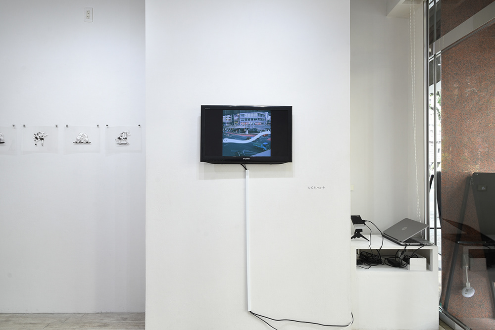 私は#やわらかいユーレイの時のアニメーションと平面作品、餅をつくアニメーションのプロジェクション作品を展示しました。
